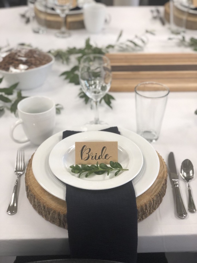Hand - lettered name tags add an elegant touch to wedding receptions & banquets.